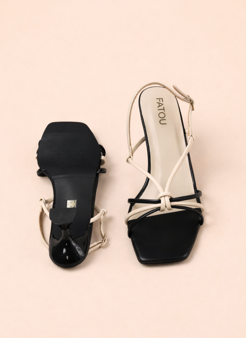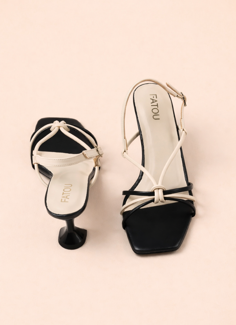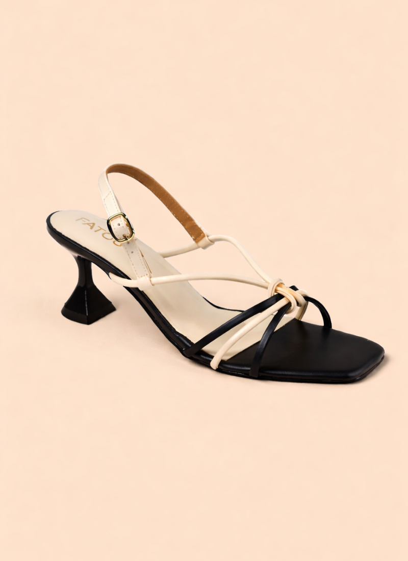 Step into modern sophistication with these Elegant Dual-Tone Strappy Heels, designed to make a subtle yet striking statement. Featuring a chic black and ivory strap combination, a trendy square toe, and a sculpted mid heel, these heels blend contemporary style with everyday comfort. Perfect for parties, dinners, and stylish outings, they pair beautifully with both western and fusion wear.